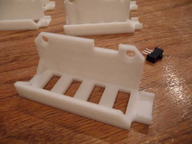 Fueron construidas las bases de batería de plástico blanco rápido prototipado fusionados con deposición de modelado. Se trata de extrusión de plástico y suciedad barato material ABS. Utilizamos 7 conjuntos de iluminación.