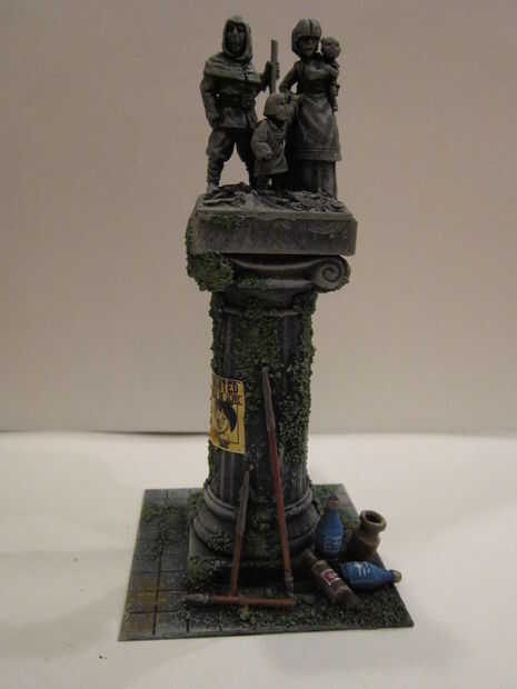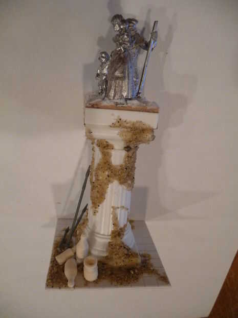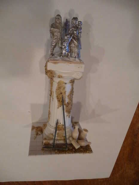 Pincel seco las figuras los tonos grises como la columna, el efecto es completo. Una buena manera de realzar el aspecto es poner colores que contrasten en la base para acentuar la piedra regiones están juntos