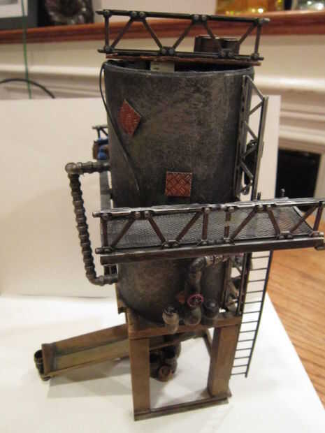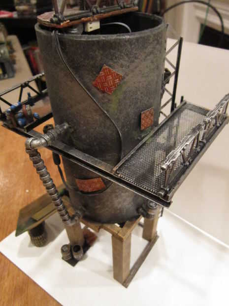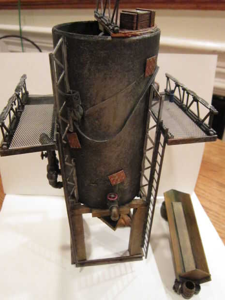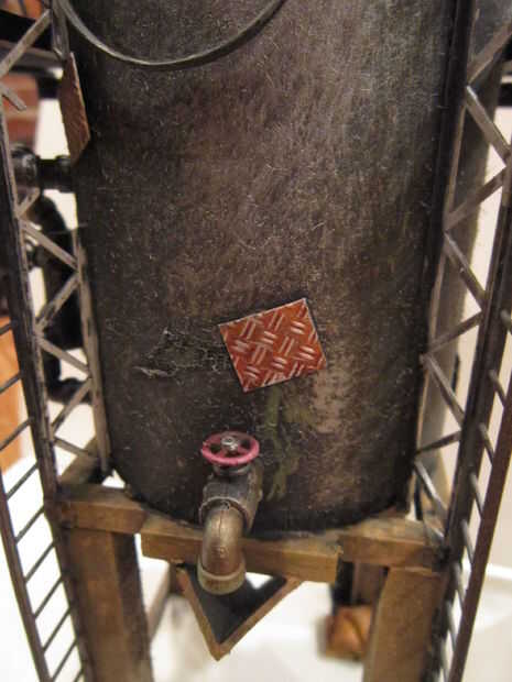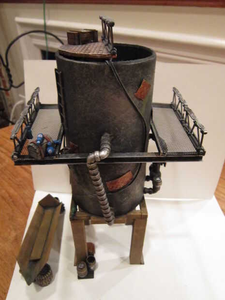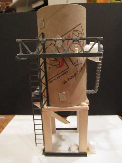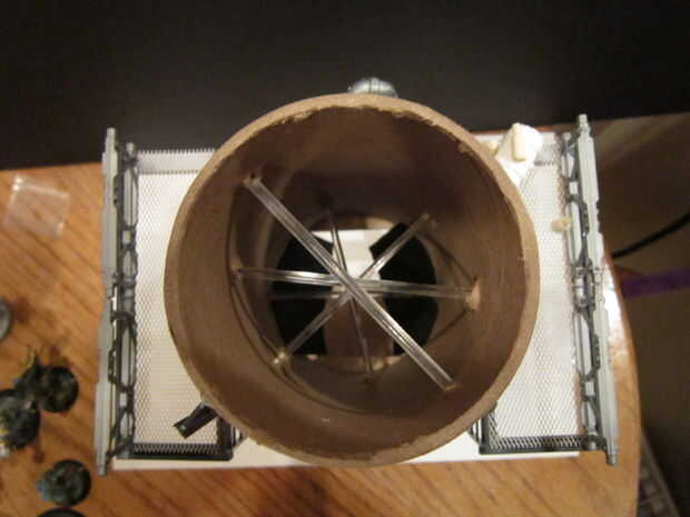 Tubo de cartón cartel grande para la característica principal. Agujeros perforados a través de él y barras de acrílico pegadas en su lugar. Los agujeros fueron parcheados con el diamondplate plastruct.