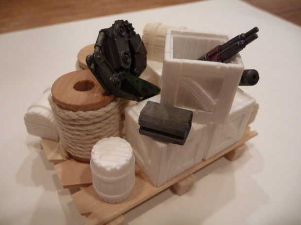 The small obstacles are built on pallets. Los palets son palitos cortado a la medida y pegados en barras cuadradas de madera de balsa.