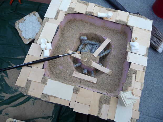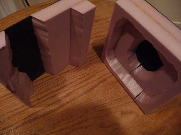 en este artículo voy a explicar a usted cómo hecho y pintado mi barricadas de tacon de Rohan.Lo que usted necesita:About1.5cm espesor de la espumaSelecciones de dienteNúcleo de espumaPolly FillaPinchos de barbacoaPegamento para maderaArenaPapel de li