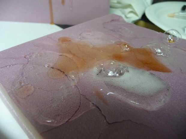 Mezclamos la tinta y poco regada abajo de la pintura en lotes diferentes para lograr resultados de diverso color.