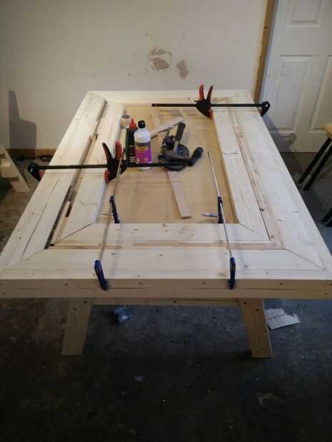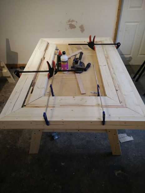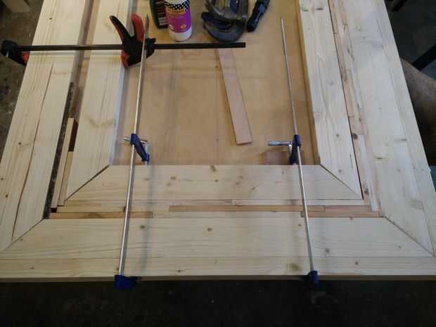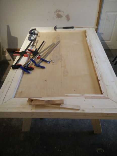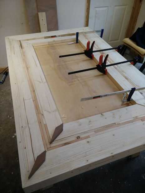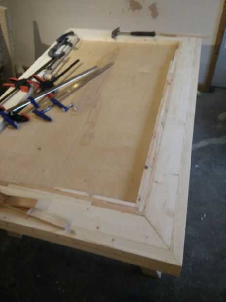 Con la estructura principal, la parte superior se colocó con un estilo de marco de foto, inglete las esquinas y celebró con tornillos y pegamento.