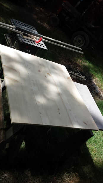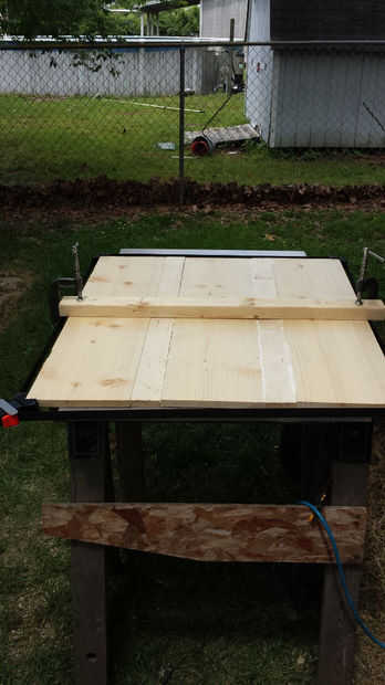 Corté cuatro 1 x 10 38" de largo, luego ajuste la sierra a rasgar un poco de cada lado para tener lados rectos que terminan con 3 tableros de 9 1/4" de ancho por 38" de largo.