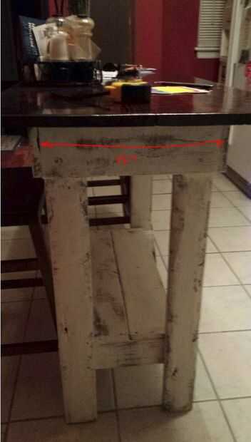 Aquí están las medidas de la base de la mesa. Quería la tabla a la altura de la encimera que es típicamente 35 pulgadas, por lo que llamó una pulgada fuera de las piernas para compensar la altura de la mesa.