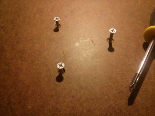 Una vez comprobado que los agujeros eran exactamente donde yo quería utilicé un poco más grande para que sea anulada la cabeza del tornillo en un fregadero' contra'.