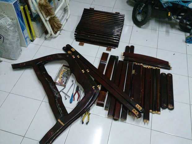 Me quito todo, cada articulación. Dejando las piernas y el resto del brazo que yo usaré como las patas de la mesa. Tengo alrededor de 30 piezas en mi piso. Esto es como construir con bloques de Lego ^_^