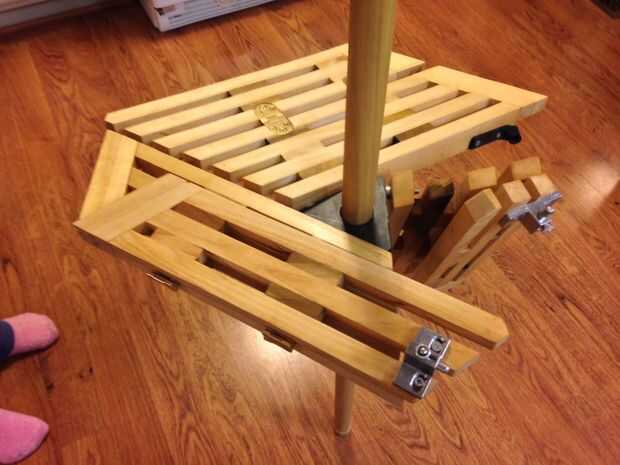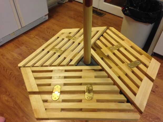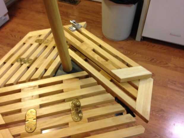 Una pequeña mesa a un paraguas. De esa manera, mi esposa y yo podríamos tener un momento romántico en la playa y no sería una mula de paquete. Podríamos configurar nuestras copas de vino en él y mirar el sol fijar juntos... Ahora mi corazón se derrite y estaba sonriendo como un idiota...