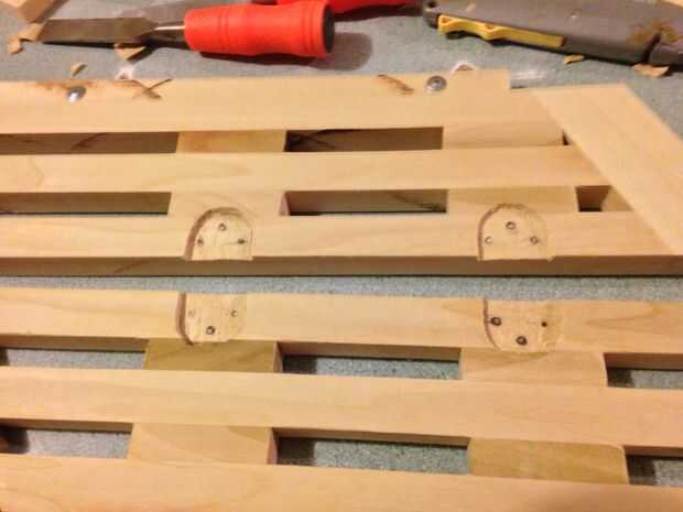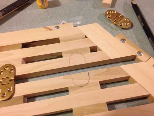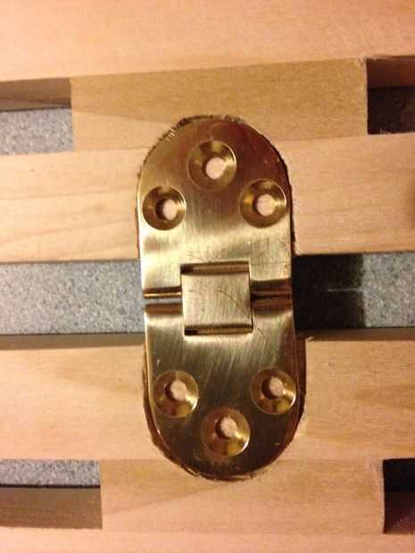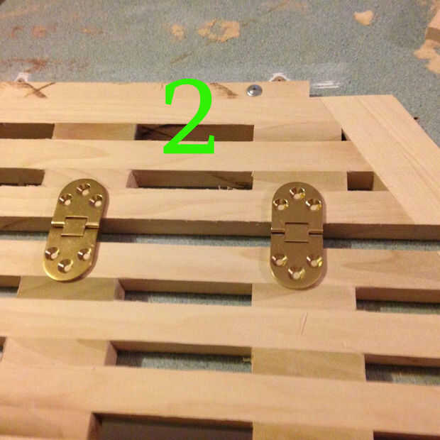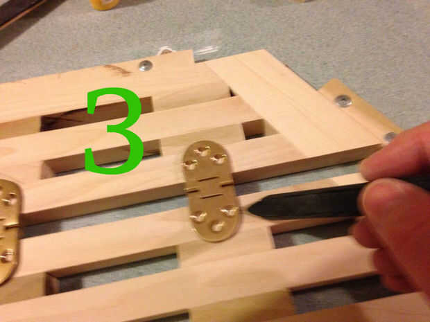 OK, ahora es tiempo para montar las bisagras. Esto permitirá que la mesa doblar sobre sí mismo.