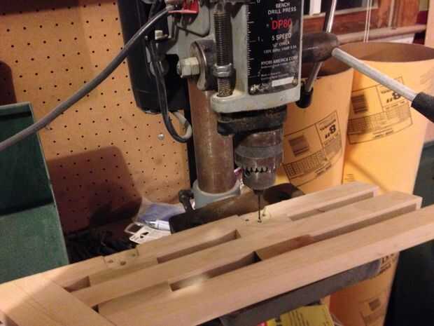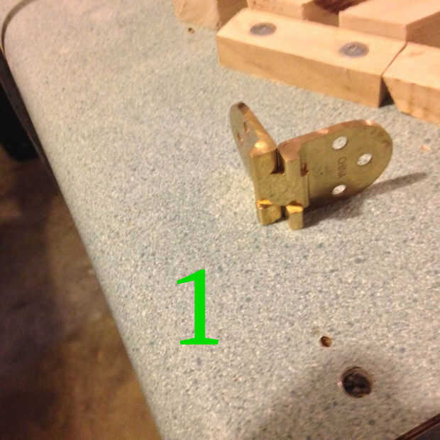 Ahora coloque las bisagras en sus spots y marque los orificios. Entonces usando un taladro y un 1/8 en poco, taladre orificios guía para los tornillos. NO PERFORE A TRAVÉS DE TODO EL CAMINO.