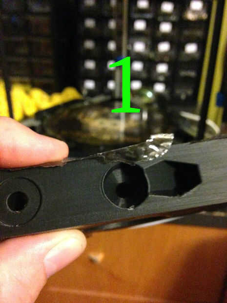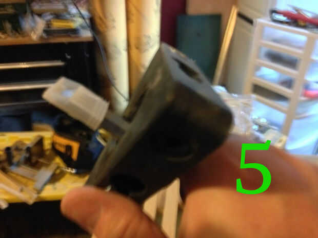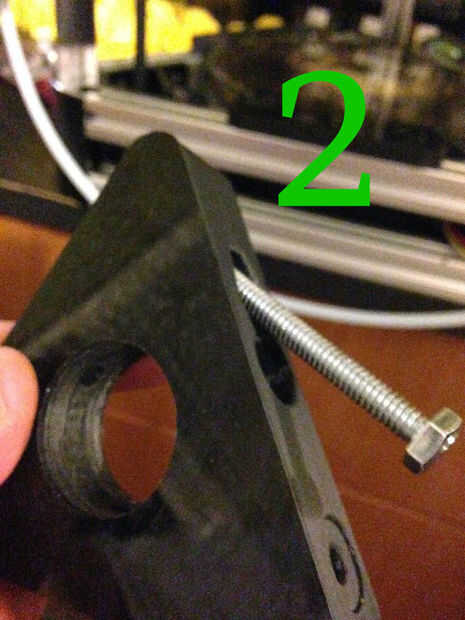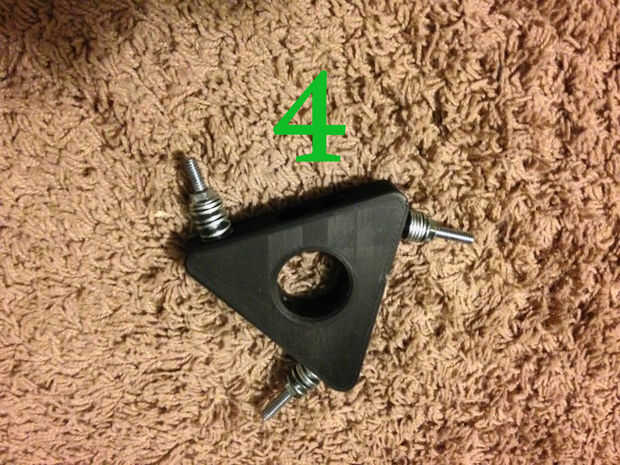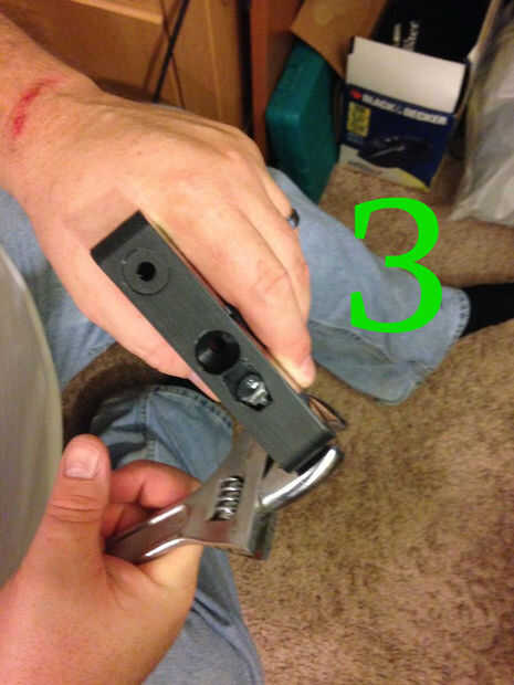 Ahora colocar unas arandelas en el cerrojo y luego la tuerca. Entonces empezar a apretar la tuerca hasta que el perno se establece plenamente dentro de la trampa de la tuerca. No todos los 3 pernos. Ver fotos 3 y 4.
