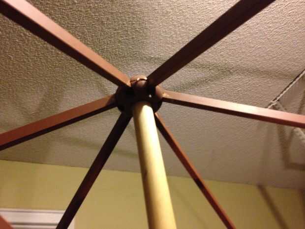 Cada sombrilla es diferente. No tengo idea como tuya va ir. Sobre el paraguas tenía, las partes se deslizó fuera o desenroscarse.