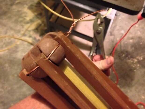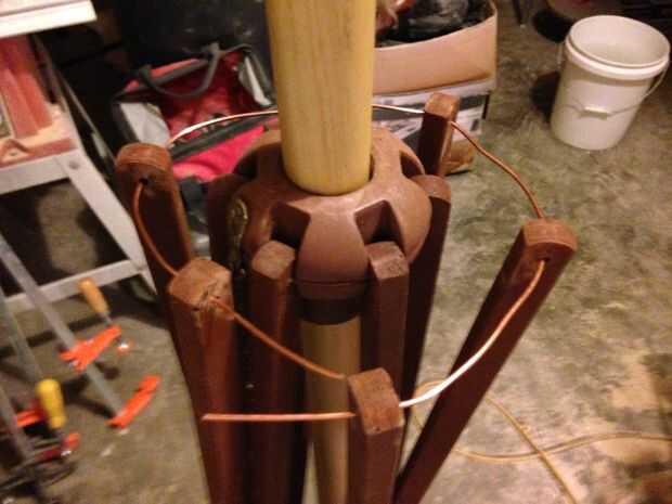 Clasificar hacia fuera las costillas del paraguas y hacer coherente lo suficiente para que un trozo de alambre a través de ellos fue un reto. Golpeó más cosas de los estantes de taller que puedo contar. Finalmente consigo y tengo fotos para probarlo. Me tomó unos 20 minutos para recoger la destrucción. :)
