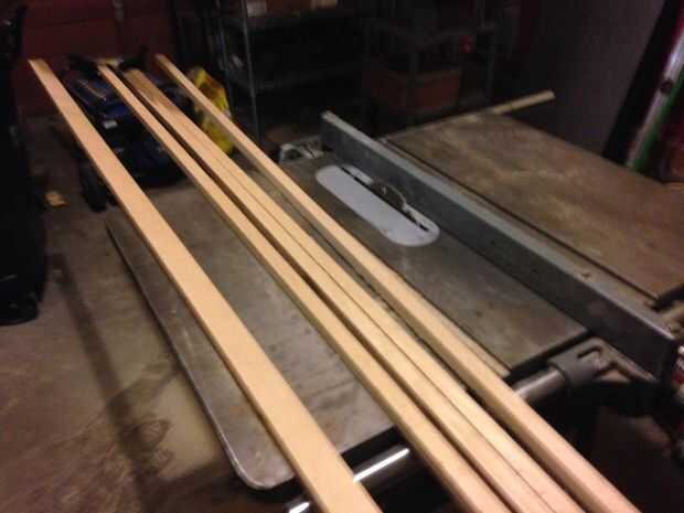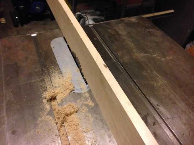 La Sierra de mesa se estableció usando el espesor de la Junta para hacer la Plaza de las tiras. Hay tiras de 3/4 x 3/4 y 1-3/4 x 3/una 4 tira en cada sección de la tabla.