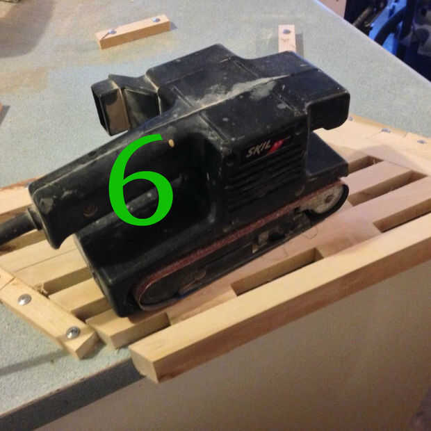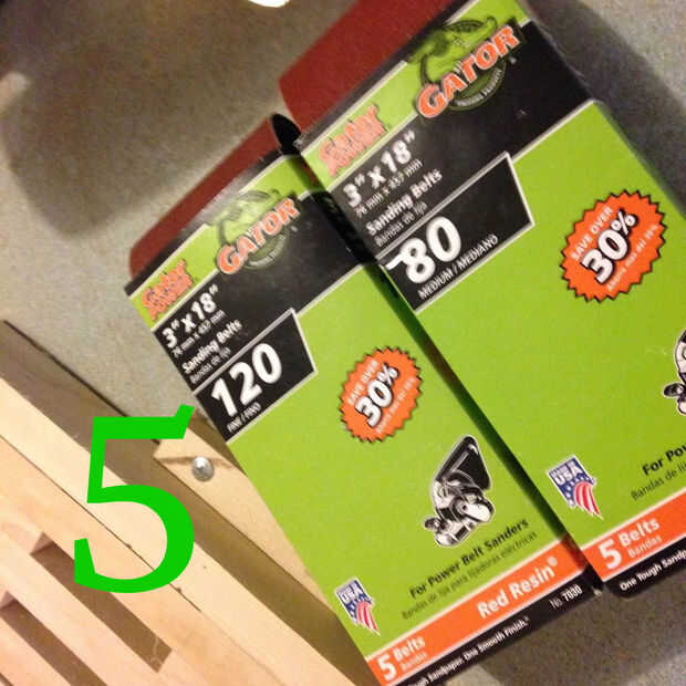 Lijadoras de banda son como una cosa de amoladora de madera arma de mano. Está bien. Ahora nada en la tabla es plana. Tendrá que ser alisadas. Creo que una más llana sería buena para esto; pero no tengo uno. Así llego a till el cows que inicio la arena.