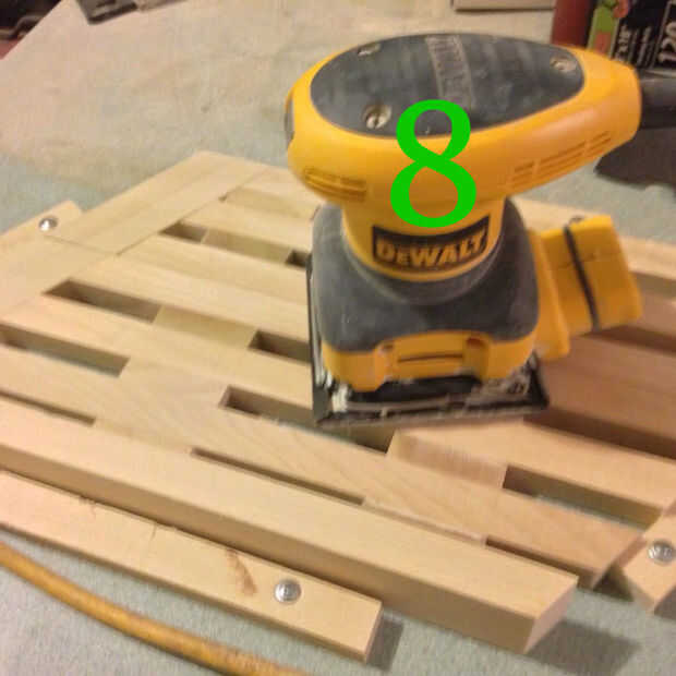 Después es plana y aún, pasar a una banda de 120 grano. Entonces cuando parece que tengo todos los rasguños hacia fuera, muevo a grano 200 en una lijadora excentrica. Ver fotos 5-8.