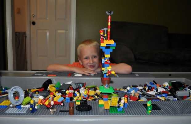 Llene la caja de almacenaje de Lego con LEGO y disfrutar. Esta tabla ha entretenido a mis hijos durante más horas de las que puedo contar ya que lo hicimos.