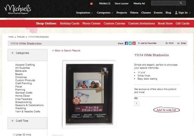 Caja de sombra de 11 x 14, $10 Michaels (por ahora 2)