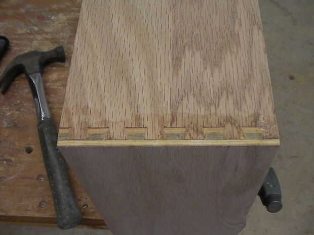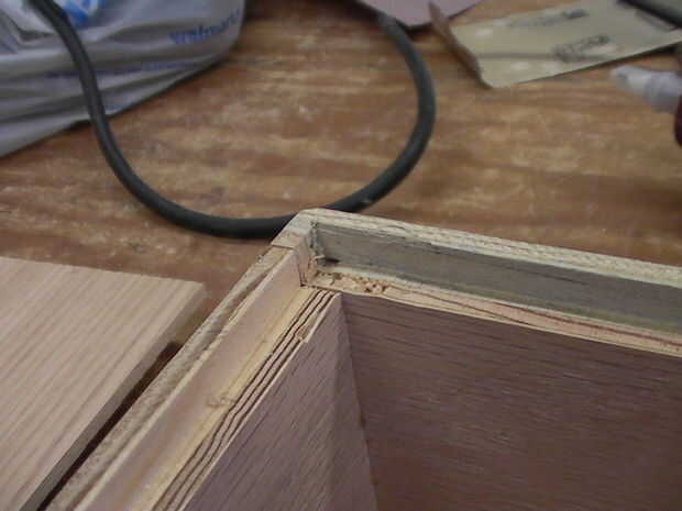 Para compensar el labio que necesitaba descansar el plexi en y mi Unión, agregué un 1/4" a lo largo y ancho. Fui con un toque un poco y "cola de Milano" había articulado las paredes de la caja. Esto resultó en realidad de mejor lo que pensaba, salvo que lo hice demasiado ancho (medida dos veces!!) así que no pude utilizar un segundo cristal de plexi pero pronto.