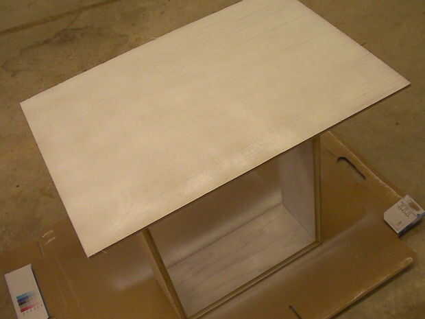 Aerosol pintado el interior de la caja y parte inferior panel blanco. El panel inferior es sólo un pedazo de 1/4" madera contrachapada cortada a la medida.