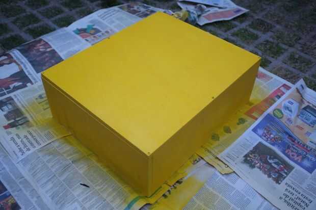 Pintar el exterior de la caja con el aerosol de esmalte sintético (o pintura) para la madera con el color de su preferencia.