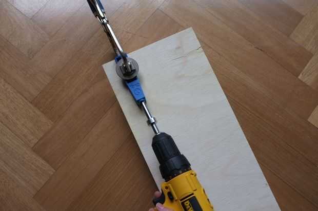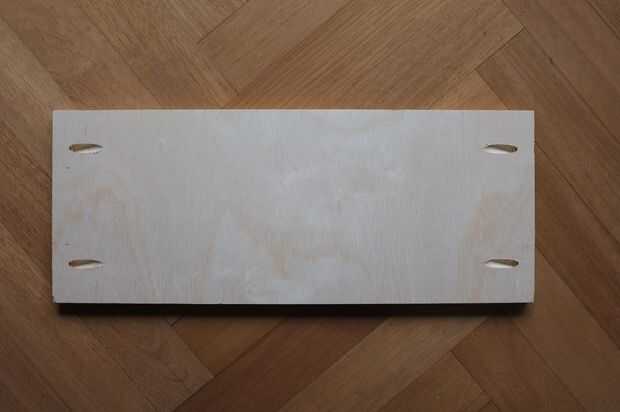 Para la fijación de los lados, hacer 4 agujeros de bolsada sobre cada uno de los 570x200mm de tamaño de dos placas de madera (como se muestra en las fotos).