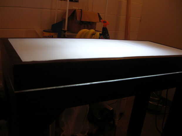 Aquí es un método barato para crear una mesa de luz para quemar la emulsión de la foto en sus pantallas.hice esta tabla para las pantallas de 20 x 24, por lo que el tamaño final es 27.5x26x9in. Utilicé restos de madera de una silla mecedora que hice