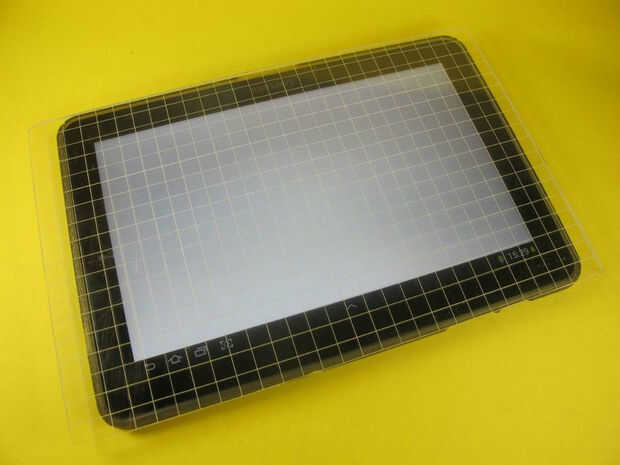 1. cortar el acrílico ligeramente más grande que la tableta (plástico y acrílico marcador cortador).