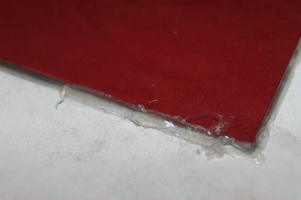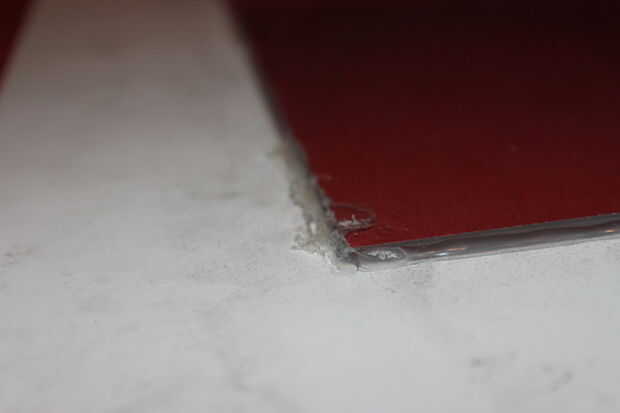 Una vez que cortarlas hacia fuera y seco que encajen, unir colocando un beed de pegamento caliente en el "interior" (no descarga superficial). Asegúrese de mantener ambas piezas cargadas hacia abajo tanto como sea posible, si no, puede voltear todo y encontrar crestas desiguales que cogerá el lápiz mientras dibujo.