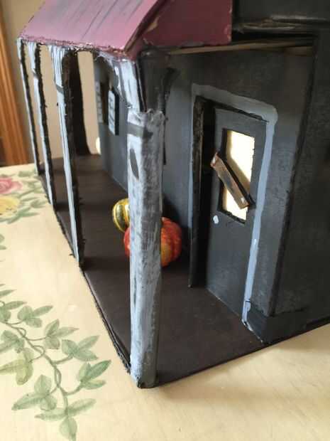 Con todo, pasé 14 centavos en el papel para las ventanas, $3,99 para luces y $2,99 en las calabazas y todo ello en Michaels. Todos los otros materiales (pintura, pegamento caliente, cartón, etc.) eran cosas que tenía que poner alrededor de la casa. Es increíble lo que se puede hacer con un poco de tiempo y algunos materiales al azar.