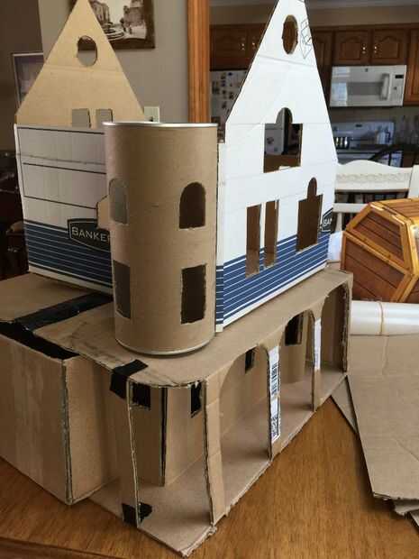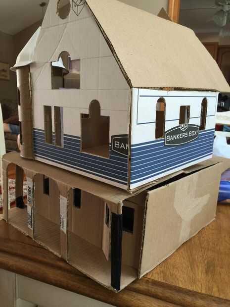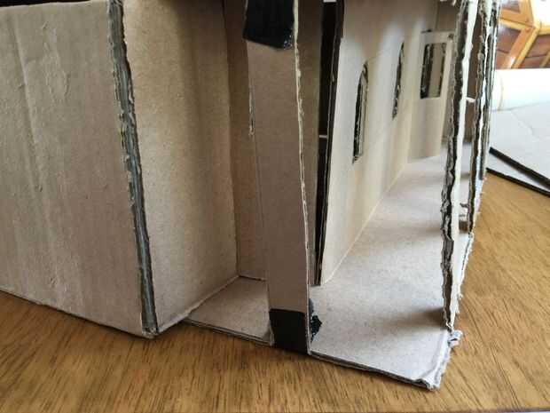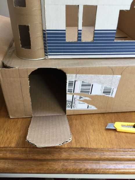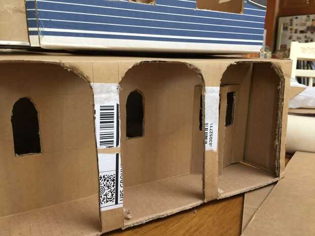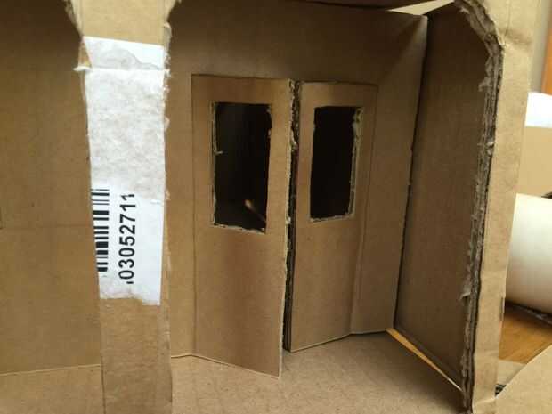 Para facilitar la construcción de mi porche envolvente en el primer piso de la casa con columnas de apoyo, me corte en la parte inferior de una caja y grandes puertas alrededor de todo el camino. Creado otro muro separado, puertas y ventanas móviles, luego insertados detrás de las columnas para crear mi "porche".