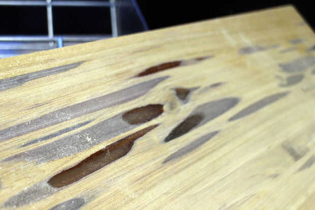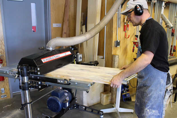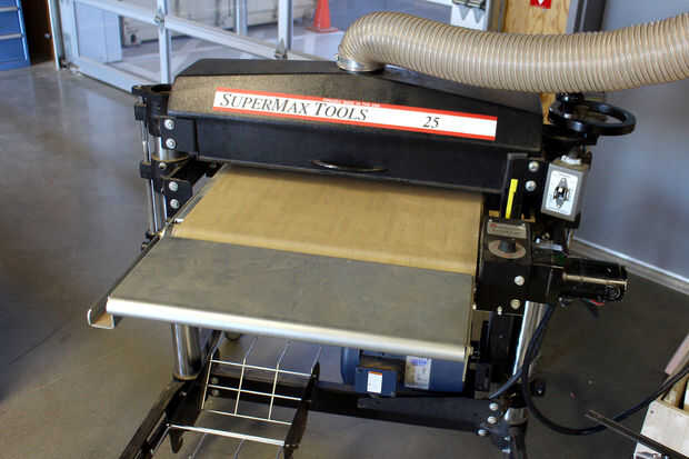 Tengo acceso a una lijadora de tambor de 25". Esta lijadora tiene un grano muy duro y es muy bueno arar a través de grandes piezas planas como mesas. Sin embargo, esta máquina no es totalmente necesaria y puede trabajar la tapa de tabla a un acabado liso utilizando una lijadora eléctrica.