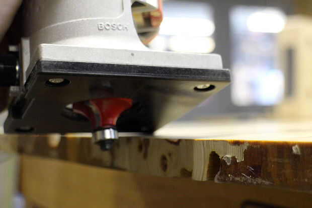 Después se lija la superficie podría dar vuelta mi atención a los bordes. Aunque mi broca tenía un cojinete para mantener la distancia desde el borde de la mesa, la naturaleza perforado de ciprés Pecky imposibilitaba la distancia uniforme en el borde con un cojinete de extremo, lo que significa la hoja del router sería ocasional dig en la tabla más donde había una cavidad en el borde de la mesa. Para solucionar esto he hecho una valla para el router.
