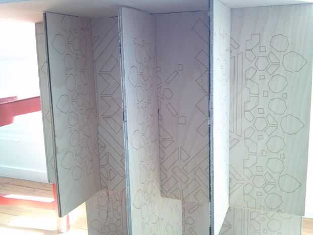 Usaba un láser en Techshop SF para dibujar mis líneas de corte en mi madera para hacer más fácil, pero podría utilizar papel carbón o papel de calco en su lugar.