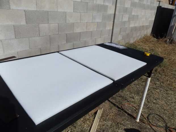 Corte la espuma por lo que tendríamos un descanso en el medio y póngala a un lado.