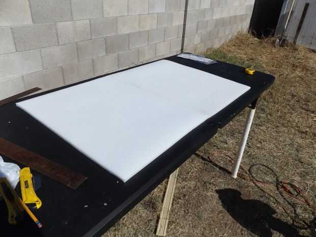 Jet deseó la superficie justo en el centro de la mesa (por supuesto que lo hizo!). Le gusta cuando la gente puede reunir por todos los lados y ver igualmente bien. Por lo tanto, solía la espuma mida donde sería la superficie de trabajo y cuánto podría conseguir.