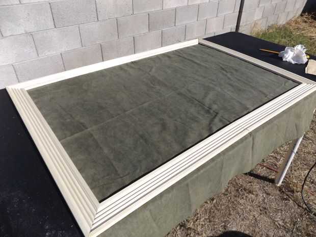 Con el corte del moldeo a presión y espuma, añadí a la tela y probados de la disposición general. Puse la espuma sobre la mesa, luego la tela y finalmente el marco pegado. Todo parecía OK, así que empecé a hacer permanente.
