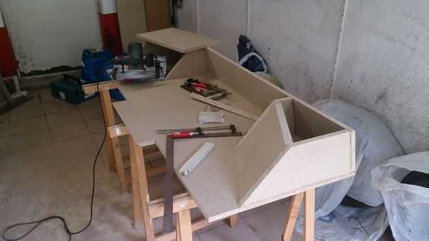 Fue un poco difícil aserrar las piezas delanteras para mis altavoces. Que funcionó bien para mí era para piezas más largas que los ángulos de la placa base y superior de la sierra, luego mantuvo frente a las partes del lado más largo y más corto de pasos 3 y 4 y marcado donde vio para el ajuste perfecto.