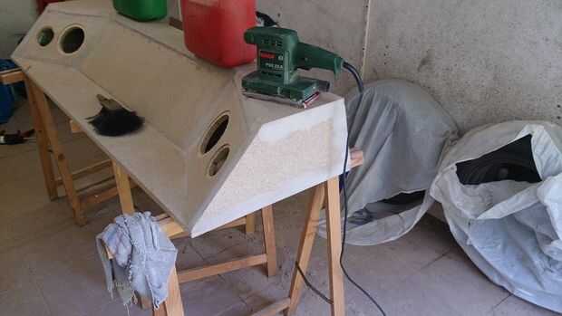 Después de secado de la masilla de madera, empecé a lijar la pieza entera. Empecé con papel de lija gruesa y una lijadora. Posteriormente usé lija manualmente. Ahora Obtén una buena impresión de cómo midi-codicioso se verá como al final.