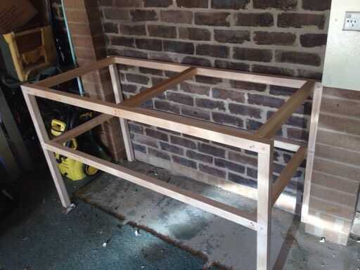 Una sola pieza de refuerzo se muestra en estas fotos pero que terminó con seis soportes transversales - 3 para apoyar el estante y 3 para la encimera