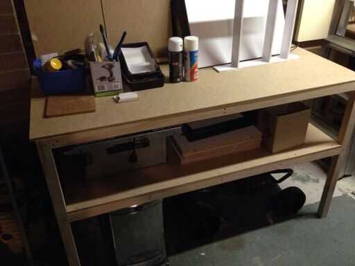 Se trata de un robusto Banco de trabajo con pies regulables mediante una mesa reciclada que se puede substituir más adelante con otra cosa.¿Por qué hacer esto ? Es muy divertido para aprender, experimentar con algunas técnicas y mucho más barato que