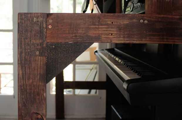 (1) una vez realizados los marcos laterales, colocar los travesaños. Esto es fundamental: hacer que las traviesas de roble, 2 x 4 pino o algo fuerte. No tengo un roble de larga duración (60 pulgadas) del tablero, por lo que "empalmar" las dos vigas que tuve con una tira de metal que yo tenía por ahí (ver imágenes). Terminé usando tablas de pino para las vigas transversales. Añadir cualquier ayudas de triángulo que son necesarias para mantener el peso que estará sobre la mesa (ver las imágenes de arriba para ver a estos dos)