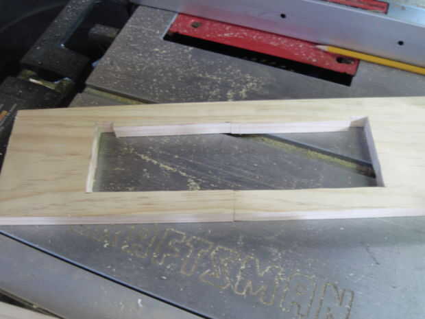También cortar otra junta (utilicé madera diferentes, porque me quedo sin las cosas buenas) similar a la pieza de la cara para mantener el cajón en el medio de soporte. El cajón termina descansando sobre esta pieza en forma de U cuando está cerrada. De lo contrario se cuelgue y mirar terrible. Debe ser el mismo como la cara de la tabla, pero sin una tapa.