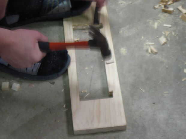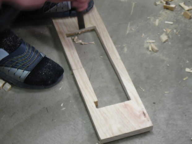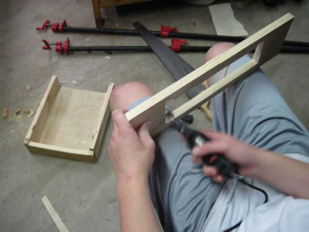 Luego corte una sangría para el cajón, según la altura deseada su cajón que (ver imagen 3-8). No olvide hacer las ranuras en la parte superior izquierda y derecha para el cajón se deslice sin caer a través.