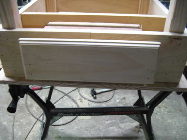 Luego corte la pieza frontal (frente de cajón). Las dimensiones reales son depende de ti, siempre y cuando sea más grande que la entrada de la ranura del cajón. Quizá quieras routerlo antes que monta aunque (ver siguiente paso).