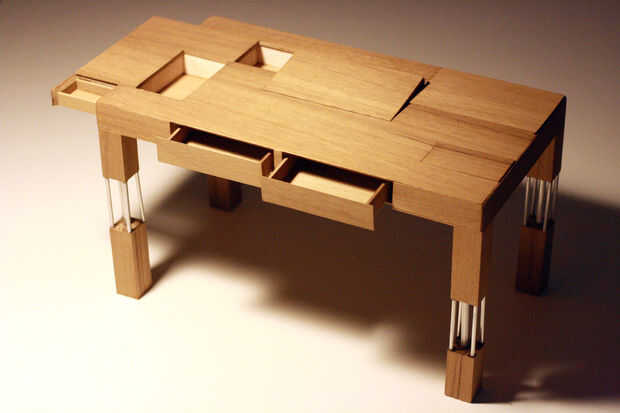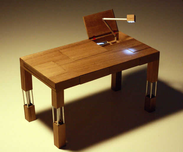 Olmo el escritorio es una mesa pensada para diseñadores y arquitectos que trabaja en lugares pequeños. Inspirado en las cajas de China. El modelo a escala 1:5 es totalmente hecho a mano. Modelo Dimensiones: 12 cm x 26 cm x 16 cm. ¡ Disfrute!