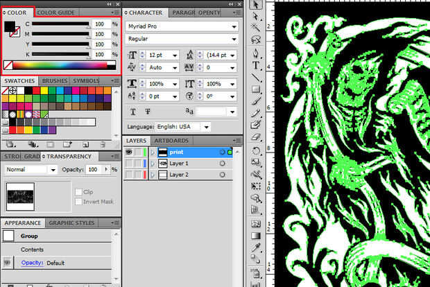 Consejo: Al crear el color negro en su software de edición de imágenes, es una buena idea para todos los deslizadores CMYK para garantizar que la impresora establece la más densa cantidad de tóner en el papel posible de la manivela. Esto aumentará sus probabilidades de tener más tarde una transferencia audaz a la cima de la tabla de madera.
