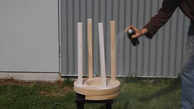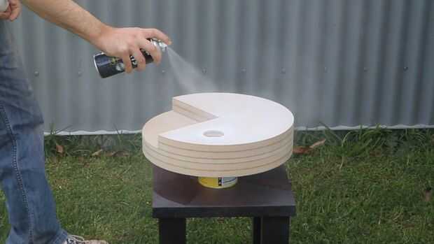 Para obtener mejores resultados doy la tapa de la mesa y las piernas un par de capas de imprimación y varias capas de pintura de esmalte, dejando un montón de tiempo medio de secado. Porque tuve que hacer la pintura exterior que no es ideal que terminé tener que lijar suavemente entre capa y capa para eliminar polvo o partículas. Terminé con un acabado muy bonito al final.