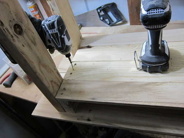 Desde 2x4s ofrecen una buena separación para una mano ir, decidí hacer un estante inferior para cualquier cosillas poner, como controles remotos de TV.