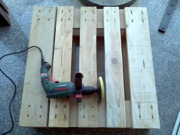 HerramientasPlataforma (2 unidades)tornillo de maderaPinotex o venishTaladroRodillo decorativoPaso 1: iniciarPaso 2: al revésPlataformaPaso 3: BasePalletworkPaso 4: pinturaPinotex o barnizPaso 5: Lo puso enBien hecho. Final ;)